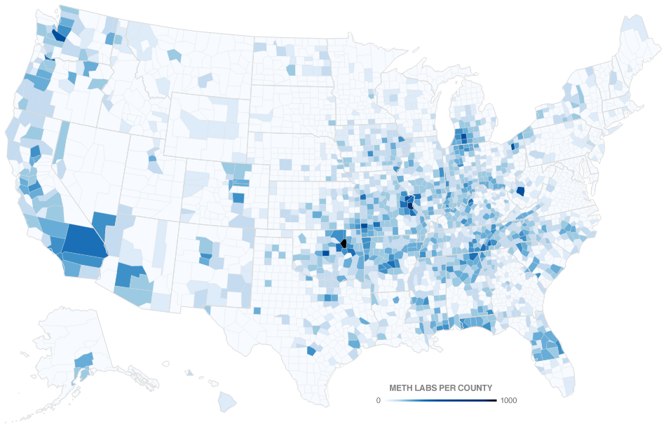 Meth Labs by CountyCuriously, Trump has courted the drug abusing side of the electorate like no other Republican president before him. Republicans have always kept this segment of the electorate at a distance, until Trump. So what is going on here? Does Trump really care about people who use drugs illegally? Not bloody likely. But there is indeed a correlation between low population density and illegal methamphetamine use. There is also a strong correlation between low population density and conservatism. But is there also a correlation between methamphetamine use and Trumpism? Is a meth user, when controlling for population density, more likely to support Trump?