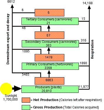 in Silver Springs, Florida (Odum, 1959). All numbers are in Kilocalories